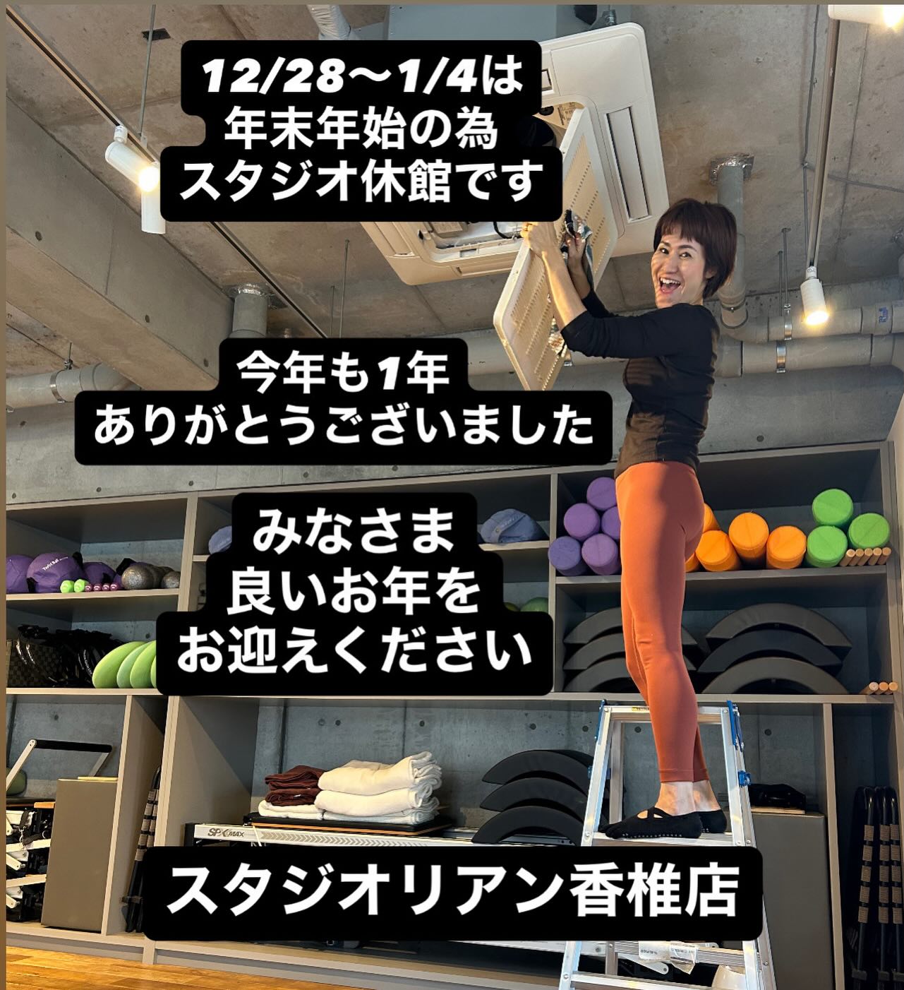 12/28〜1/4は年末年始の為スタジオ休館です。