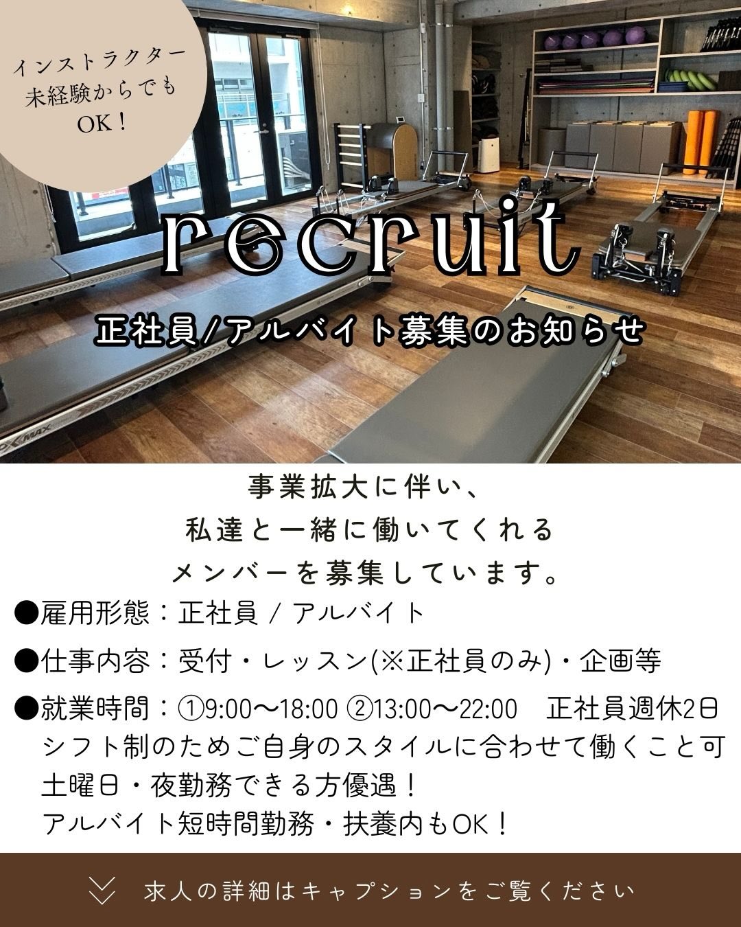 ピラティス&ヨガスタジオにて、レッスン事業拡大につき、一緒にスタジオを盛り上げてくれるアルバイトコンシェルジュを募集いたします。